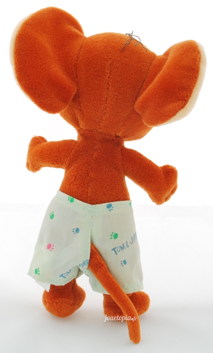 C’est une peluche assez ancienne puisqu’elle date de 1998. Elle est aujourd’hui extrêmement rare et introuvable, même sur Internet. Pour Jouétopia, c’est presque une exclusivité ! Cette peluche de Jerry avec son short d’été est bien sûr conforme aux normes européennes (CE). Elle est lavable dans une eau à 30 degrés maximum et supporte un passage en machine dans un programme « linge délicat ».